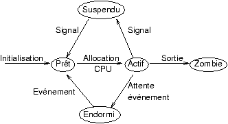 diagramme des états d'un processus :